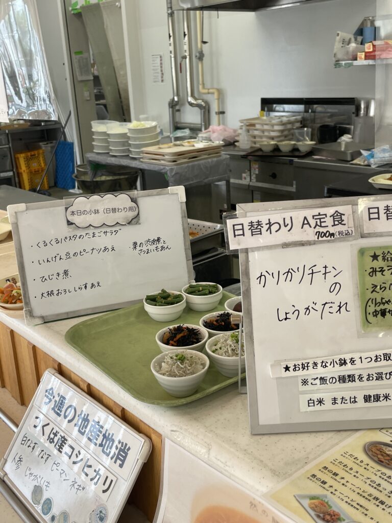 定食を注文すると小鉢が選べます。給食が食べられる日は多くの人が給食メニューを頼んでいました。